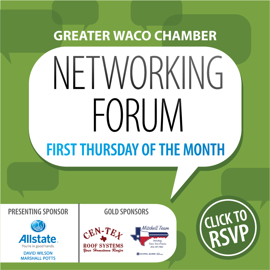 Networking Forum, our popular member networking event, is scheduled for Thursday, August 1st! This month Milo will be hosting us. Be prepared to give a 60-second oral presentation about your business or any events that you have coming up. We can't wait to see you there! ***This event is a member benefit. If you are not a member and are interested in learning more about membership, please contact Lupe Teichelman at lteichelman@wacochamber.com *** Your investment helps to keep our programs active. Meal purchases are not subject to refunds.